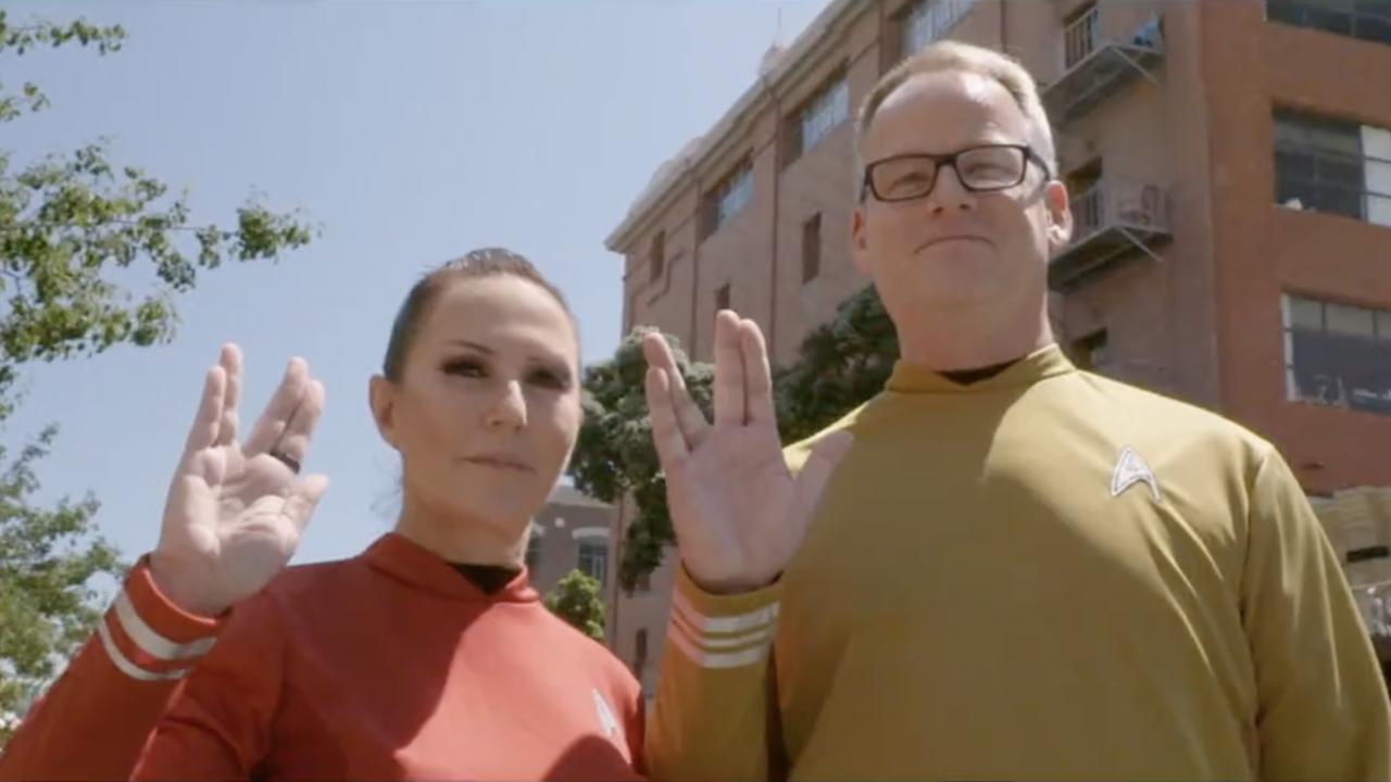 A fully illustrated guide that bridges the nexus between stasis and health, Star Trek: Body by Starfleet by Robb Pearlman provides real, practical, and fun exercises for pop culture fans of all ages and physical abilities so that they may boldly live long and prosper. In the video above, Pearlman and workout partner Victoria Schmidt (of Goldbubble Clothing) preview several of the accessible moves found between the spine.